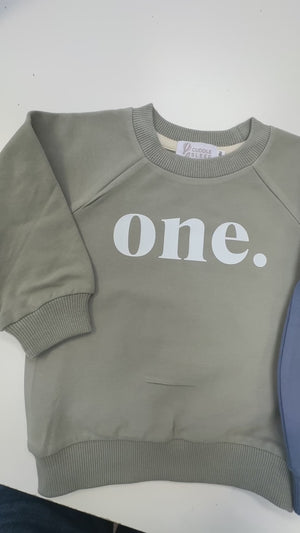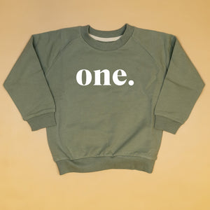 Made from organic cotton french terry (95% cotton, 5% spandex), this sweatshirt is soft and cozy for your baby's special day. The classic design features "one." printed in white, adding a touch of simplicity and charm.