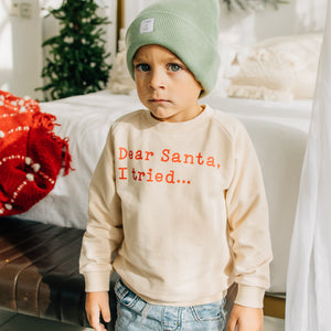 Some toddlers have been nice; some have been naughty—but yours? They tried! This Dear Santa, I Tried... cream French terry sweatshirt features a playful typewriter-style red design that sums up the toddler experience.