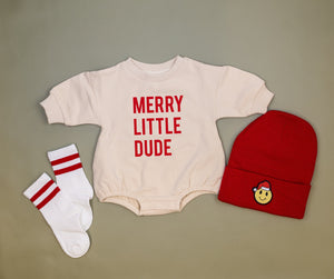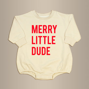 Who’s ready to sleigh the holidays? Your little guy will bring all the merry vibes in this Merry Little Dude sweatshirt romper. It’s modern, playful, and perfect for making everyone at the holiday party smile (or at least distract them from the chaos).