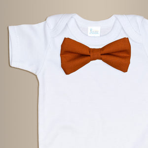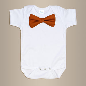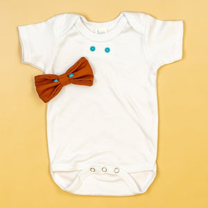 This includes a bodysuit with a snap-on BURNT ORANGE bowtie.