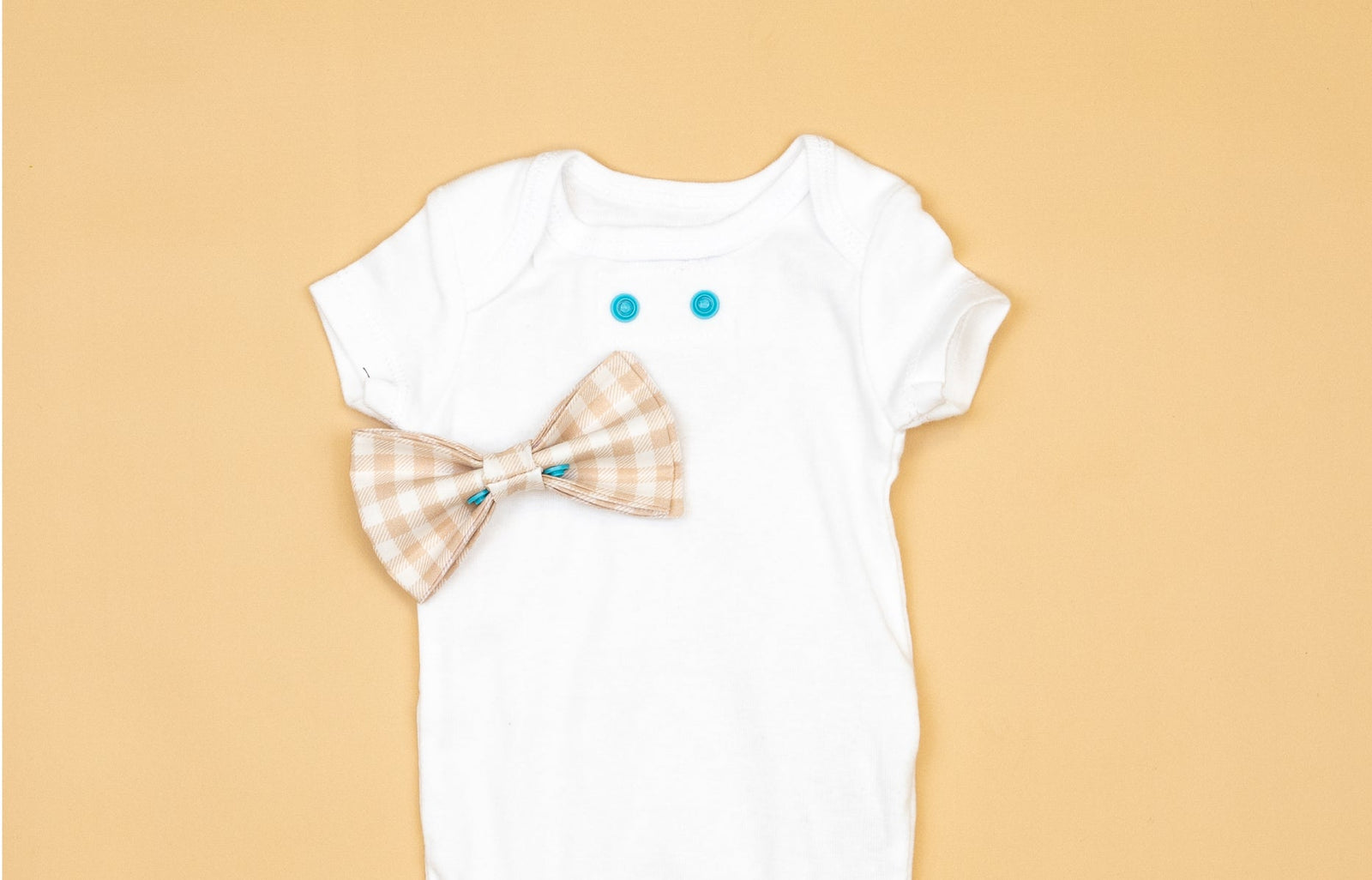 Baby can wear the same bow ties from birth to about age 8, and neck ties until about age 2 - by attaching them to neck straps or bigger bodysuits and tees.