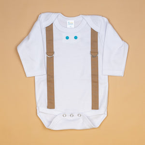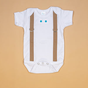 This includes (1) bodysuit or tshirt, short or long sleeved, with MOCHA suspenders.