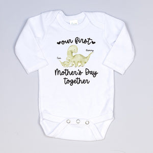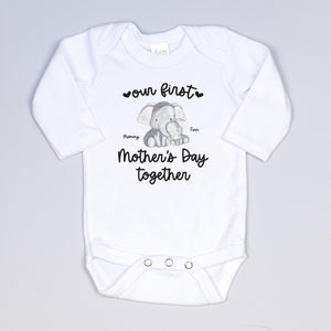 Celebrate Mom's first Mother's Day with our "First Mother's Day Personalized Animals | White Bodysuit"!