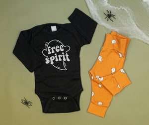 We took my son to the pumpkin patch in his cute free spirit onesie with the orange ghost leggings. Pictures turned out amazing! He was comfortable all day. Not too hot or cold. It fit him like a glove. Great to have a cute little outfit to remember the day by. Also the order shipped very quickly.