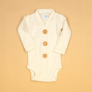 • The trim is closed in the center (buttons are for decoration only), so the cardigan won't pucker around chubby bellies and will always be picture perfect.