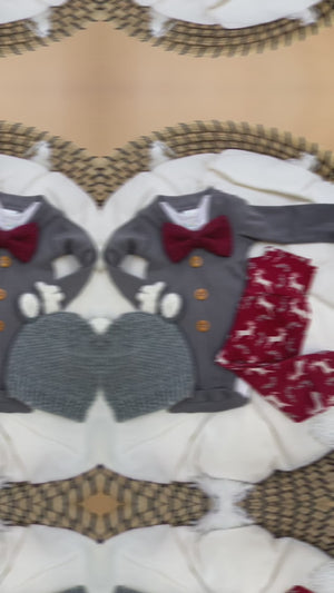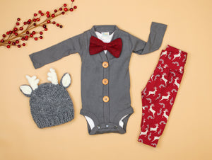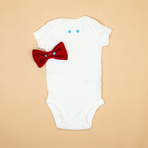 • Bowtie: 100% cotton, made by hand in the USA. Attaches to bodysuit by plastic snaps and can be removed.