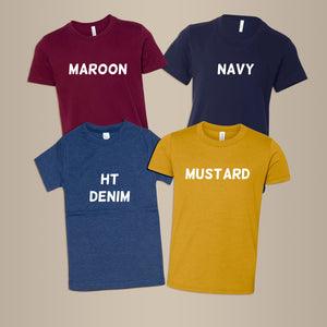 For kids and teens, these “Most Likely To” tees in mustard, navy, maroon, and ht denim are perfect for holiday gatherings. They’re super comfortable, great for layering, and soft enough to keep them in the family spirit—even if they’re only here for dessert.