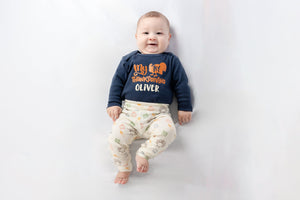 • Celebrate baby’s first Thanksgiving with this charming navy bodysuit, designed to make those holiday memories extra sweet! The warm orange “My 1st Thanksgiving” design, featuring hand-lettering by an artist and an adorable little turkey in the “1st,” gives it a special, one-of-a-kind feel that’s perfect for photos and family gatherings.