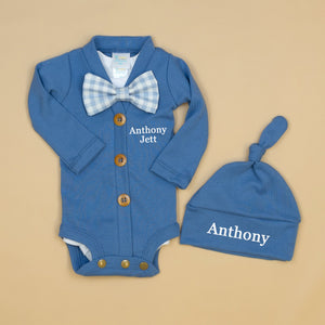 "Cardisuits" aka cardigan bodysuits are our signature product. Dress it up over a bowtie bodysuit, personalize it for a special touch, or keep it snuggly and simple. But however you style it, cardisuits might as well stand for "cutest bodysuits ever".