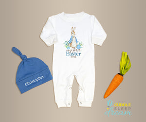 • Get ready for your baby boy's first Easter with our My First Easter w/ Blue Cottontail Rabbit Romper!