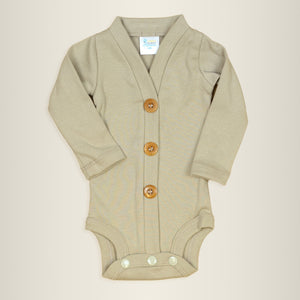 • The trim is closed in the center (buttons are for decoration only), so the cardigan won't pucker around chubby bellies and will always be picture perfect.