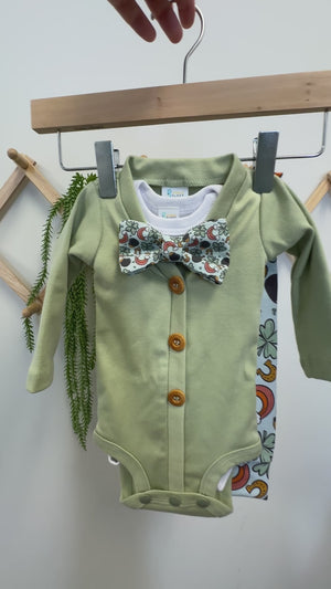 "Cardisuits" aka cardigan bodysuits are our signature product. Dress it up over a bowtie bodysuit, personalize it for a special touch, or keep it snuggly and simple. But however you style it, cardisuits might as well stand for "cutest bodysuits ever".