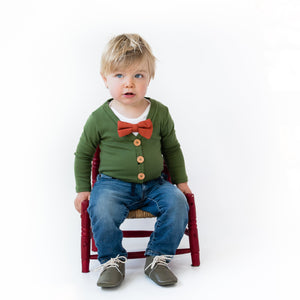 • Cardigans are our signature product. They are small-batch manufactured by our team of moms in Pennsylvania.