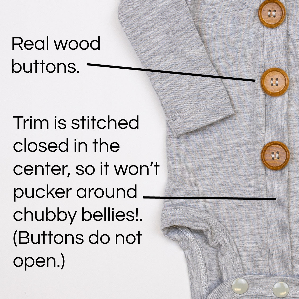 • The trim is closed in the center (buttons are for decoration only), so the cardigan won't pucker and will always be picture perfect.