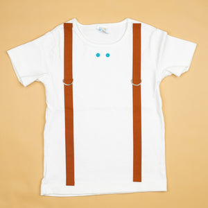 This includes (1) onesie or tshirt, short or long sleeved, with BURNT ORANGE suspenders.