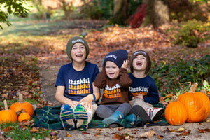 • Complete the family’s Thanksgiving look with this navy “Thankful” beanie, embroidered in a fun retro style. Whether you’re dressing up or keeping it casual, this hat adds the perfect finishing touch.